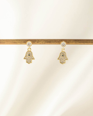 Dealla Hamsa White Zircon Embellished Dangle Studs