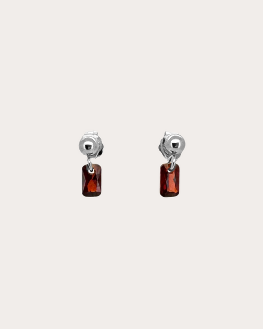 Rectangle Garnet Gemstone Dangle Studs