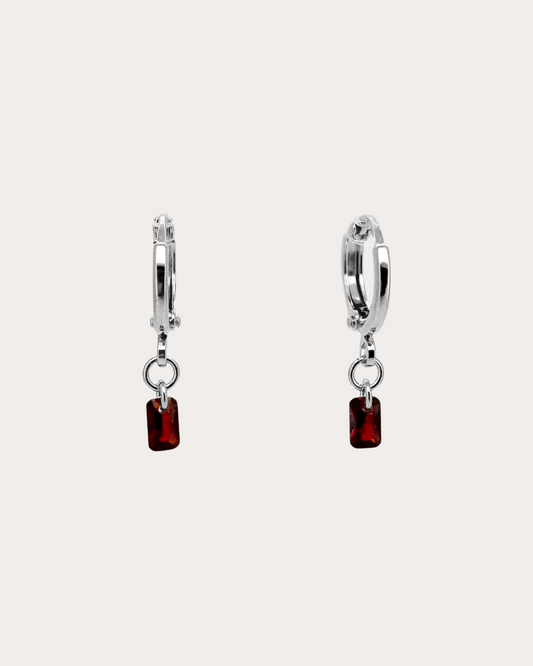 Rectangle Garnet Gemstone Huggie Earrings