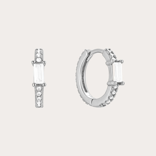 Minnie Carved Rectangle White Zircon Huggie Earrings