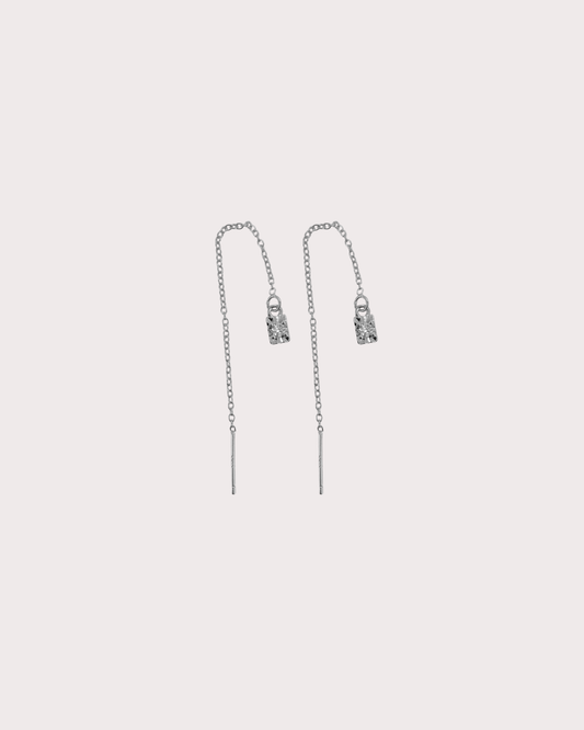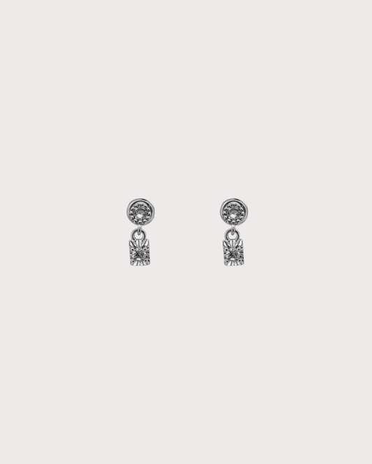 Minnie Carved Rectangle White Zircon Dangle Studs