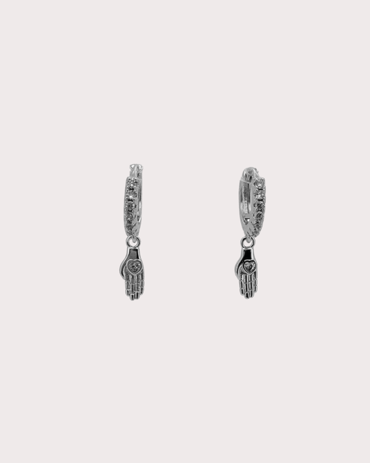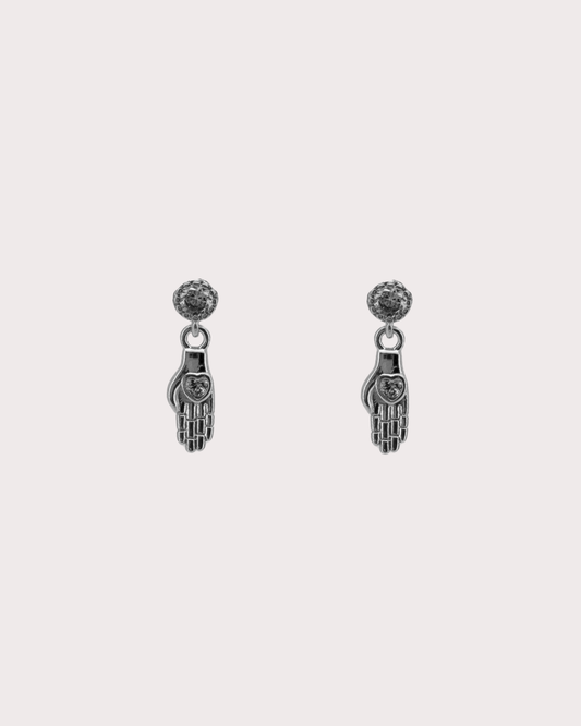 Alexis Hand Heart White Zircon Embellished Dangle Studs