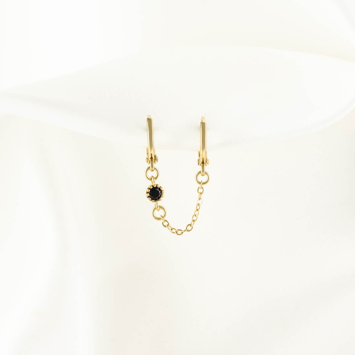 Alexandra Black Zircon Huggie Chain Earrings